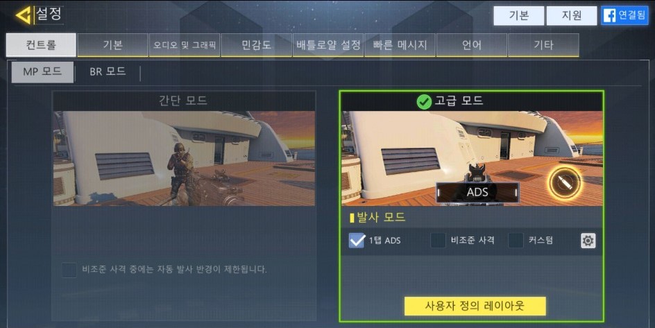 콜오브듀티 모바일은 조작을 2가지 방식으로 재구성했습니다. 조준선을 일정 시간 동안 상대에게 맞췄을 때 자동으로 사격하는 '간단 모드'와 사격 시 줌으로 자동 전환하는 '고급 모드'로 유저의 스타일을 고려했습니다. 두 모드의 공통점은 줌 버튼을 배제했다는 점인데 기능을 덜어냈다고 하더라도 정확도가 떨어지는 느낌이 아닙니다.