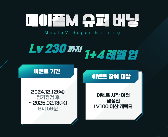 이번 겨울에는 하이퍼버닝M과 메이플M 슈퍼 버닝 이벤트가 진행됩니다.