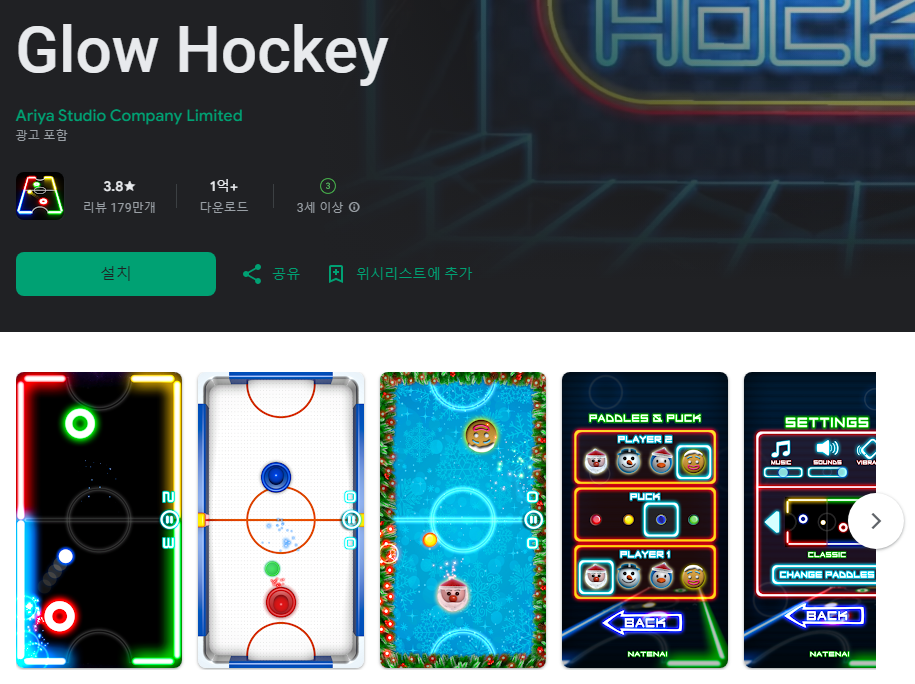 퍽을 상대방 골대로 밀어 넣는 단순한 룰이지만, 은근히 중독성이 있어요.
