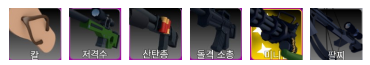 거리에 따라 성능이 달라지고, 예측이 필요한 무기입니다.