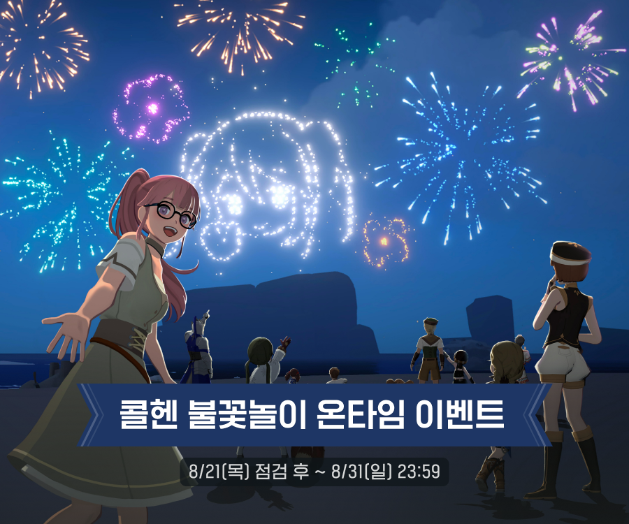 모험가 여러분을 위한 특별한 이벤트, '콜헨 불꽃놀이'가 시작됩니다! 아름다운 불꽃놀이를 감상하며 다양한 선물을 받을 수 있는 이번 이벤트에 참여해 보세요.