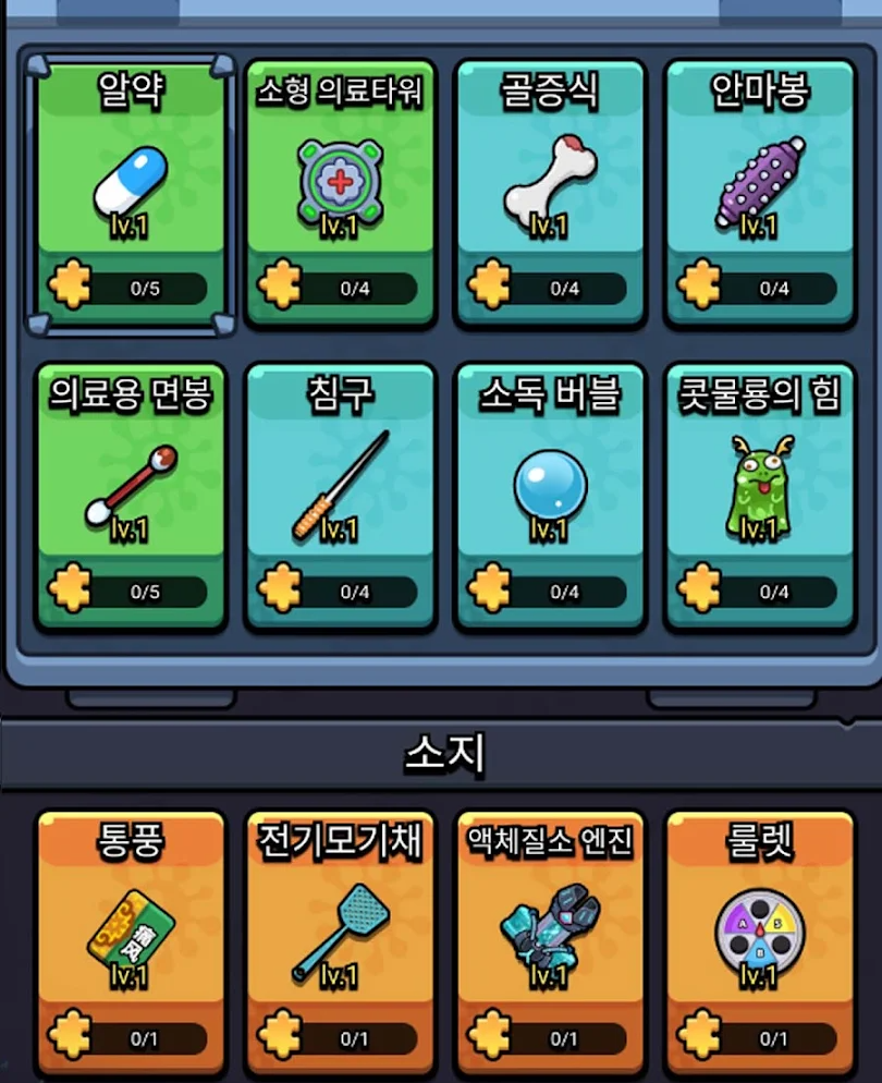 세포 특공대에는 다양한 스킬들이 존재하며, 이를 조합하고 강화하는 것이 핵심입니다. 플레이어의 레벨이 오르면 더 높은 등급의 무기가 해금되는데, 이때 무기를 승급시키면 추가 기능이 해금되므로 이 점을 고려해 무기를 선택하는 것이 중요합니다.