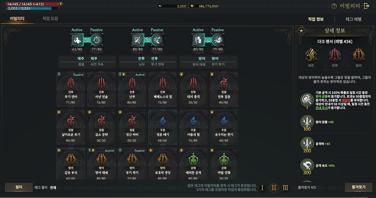 다크랜서는 공격적인 세팅을 원하는 유저에게 적합합니다. 기본 공격 시 100% 확률로 방어 관통 효과가 발동되며, 최대 50스택까지 중첩됩니다. 이 효과는 적의 인내도를 무시하기 때문에 방어력이 높은 보스나 PvP 상대에게 큰 이점을 제공합니다. 빠른 타격과 강한 순간 폭딜을 원하는 유저라면 다크랜서를 추천합니다.