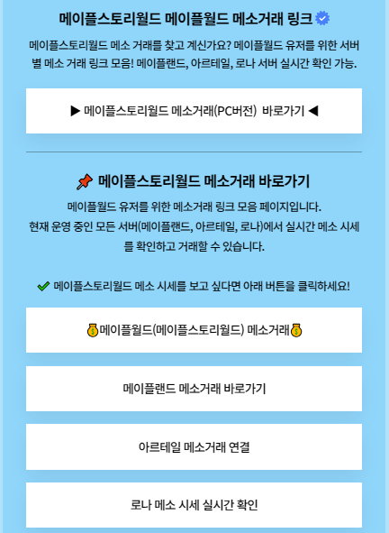 메이플스토리월드 메이플월드 메소거래 링크