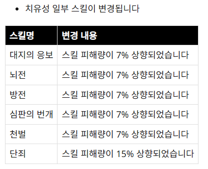 치유성이 서버렉으로 힐이 씹히던 현상 역시 함께 수정될 예정입니다.