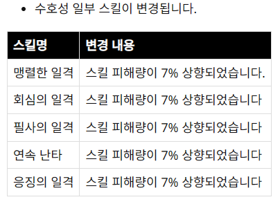 ● 직업 밸런스: 수호성·치유성 상향