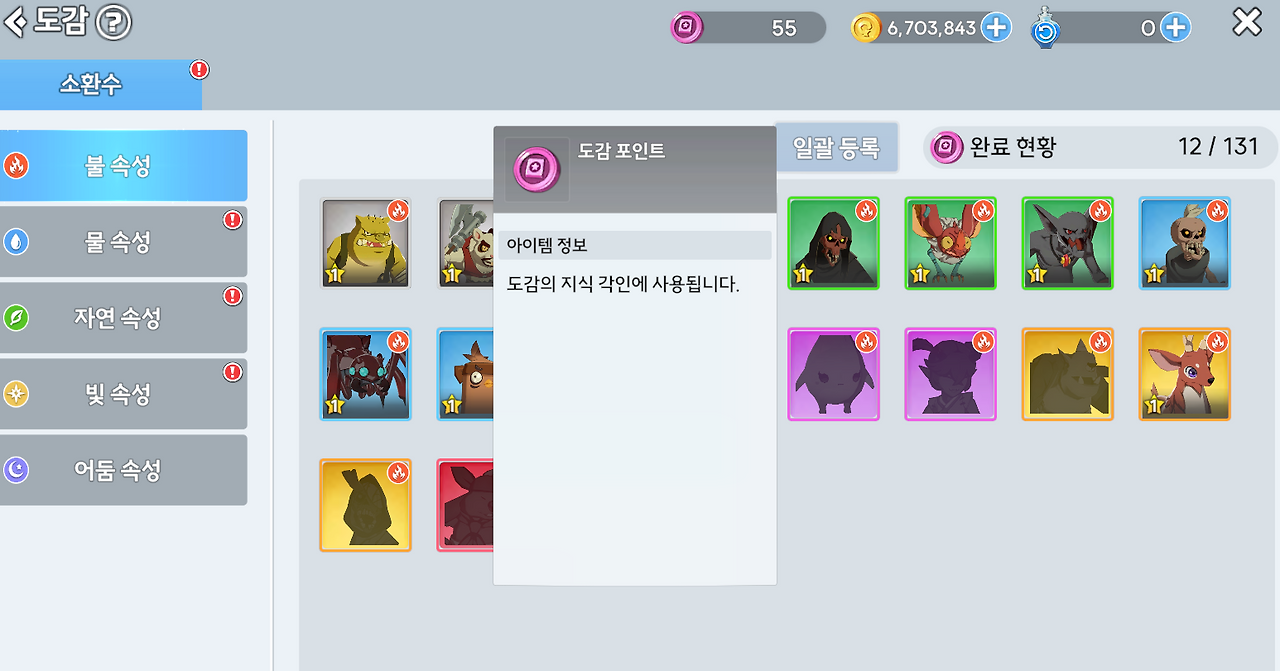 각 도감에 보유한 아이템이나 소환수를 등록하면 ‘도감 포인트’를 얻을 수 있으며, 이 포인트는 지식 각인(스탯 강화)에 사용됩니다.