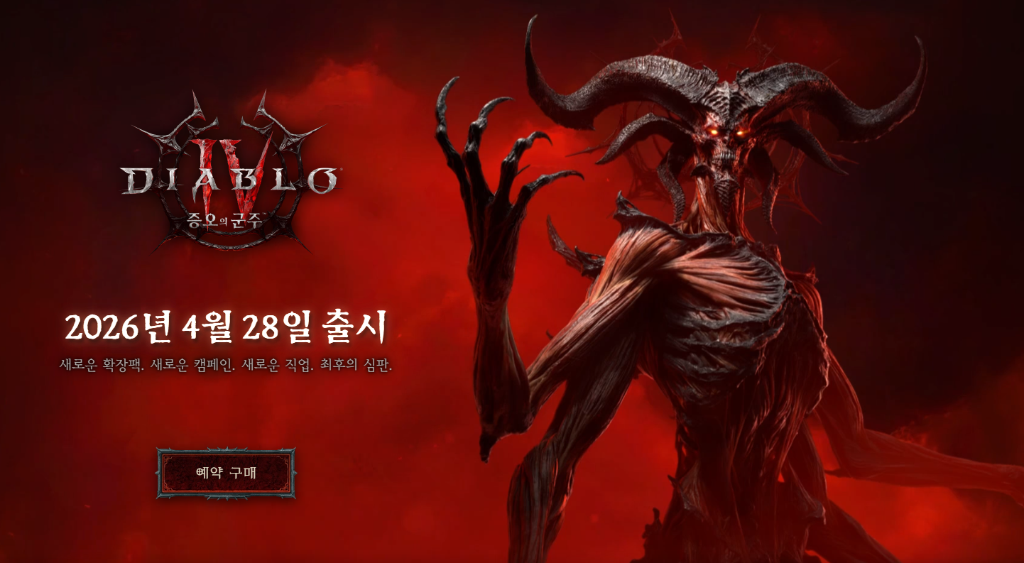 블리자드가 공개한 디아블로4 확장팩 증오의 군주는 단순한 추가 콘텐츠가 아니라, 게임의 구조 자체를 한 단계 끌어올리는 대형 업데이트에 가깝습니다. 성역을 배경으로 한 이야기는 릴리트 이후의 세계를 다루며, 증오의 대악마 메피스토가 다시금 중심에 서게 됩니다. 천상과 지옥 사이의 균형이 무너진 지금, 성역은 또 한 번 거대한 선택의 기로에 놓이게 됩니다.