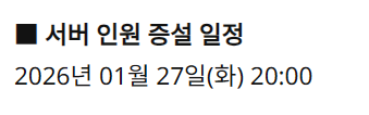 서버 인원 증설 일시: 2026년 1월 27일(화) 20:00