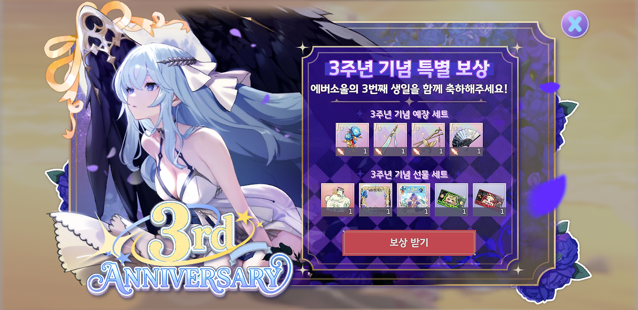 출석 이벤트와 특별 선물도 풍부하다. 7일 출석을 통해 에버스톤, 유물 소환권, 에픽 정령 선택 상자 등을 획득할 수 있고, 3주년 예장 세트와 월정액 체험권, 전용 프레임과 오브제까지 한 번에 제공된다. 특히 기존 월정액 이용자는 혜택 기간이 자동 연장되는 점도 장점이다.