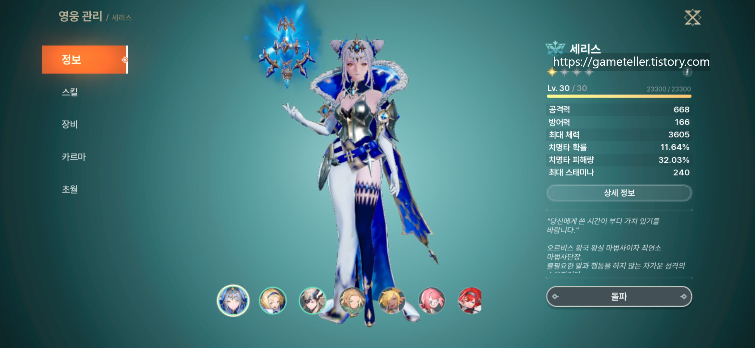 상위 티어 캐릭터로는 세리스, 칼시온, 레이나가 가장 많이 언급된다. 이 중 세리스는 안정적인 메인 딜러 역할을 맡기 좋고, 칼시온은 폭발적인 순간 화력이 강점이며, 레이나는 파티 안정성을 높여주는 만능형 캐릭터로 평가받고 있다. 다만 출시 초기인 만큼, 이 티어표는 절대적인 기준이라기보다는 참고용 지표로 보는 것이 좋다.